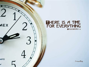 "There is an appointed time for everything. And there is a time for every event under heaven -- A time to give birth and a time to die; A time to plant and a time to uproot what is planted. A time to kill and a time to heal; A time to tear down and a time to build up. A time to weep and a time to laugh; A time to mourn and a time to dance. A time to throw stones and a time to gather stones; A time to embrace and a time to shun embracing. A time to search and a time to give up as lost; A time to keep and a time to throw away. A time to tear apart and a time to sew together; A time to be silent and a time to speak. A time to love and a time to hate; A time for war and a time for peace. What profit is there to the worker from that in which he toils? I have seen the task which God has given the sons of men with which to occupy themselves. He has made everything appropriate in its time. He has also set eternity in their heart, yet so that man will not find out the work which God has done from the beginning even to the end. I know that there is nothing better for them than to rejoice and to do good in one's lifetime; moreover, that every man who eats and drinks sees good in all his labor -- it is the gift of God." --